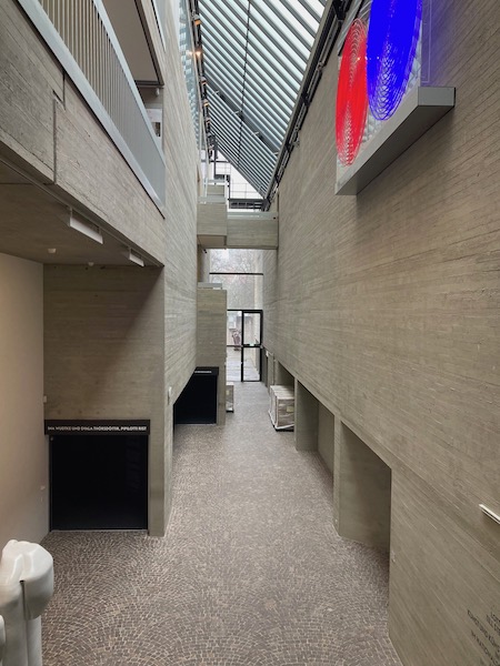 Wenn man die Reichsmark von 1913 mit ca. € 20,00 ansetzt, sind 200 Millionen Baukosten für diesen Summe gar nicht mal so viel - angesichts der heutigen Preise z.B. für die Elbphilharmonie, den Berliner Flughafen oder die Kölner Oper, die alle ein Mehrfaches und Vielfaches gekostet haben oder noch kosten. ![]() Das Rathaus ist das einzige in Deutschland, das auch eine Kuppel hat Die Größe des Rathauses erschließt sich im Innenraum. Von der Eingangshalle aus gehen große Freitreppen über drei Etagen. Die Flure sind ausreichend groß für Sitzbänke und die Innenhöhe der Kuppel beträgt über dreißig Meter. Wer mag, kann mit einem Aufzug auf die ca. 100 Meter hohe Kuppel fahren und soll dann bis zum Harz gucken können. Ich konnte es noch nicht überprüfen. Überall sind aber Jugendstilelemente, sei es an den Wänden, den Türen oder den Fenstern. ![]() Das Innere des Rathauses - die Eingangshalle Die oben erwähnten Stadtmodelle zeigen Hannover in vier Phasen: Das älteste Modell zeigt die Stadt um 1689, eines die Stadt um 1939 vor Kriegsbeginn und eins von 1945, bei dem man sieht, daß hier nicht viel stehengeblieben ist. Das aktuelle Modell (um 2000) wurde gerade gesäubert. ![]() Das aktuelle Modell (um 2000) wird gerade gestaubsaugt. nach oben Weltenmuseum Das Weltenmuseum ist das Landesmuseum Niedersachsens, staatlich finanziert und gefördert und damit der kulturelle niedersächsiche Leuchttum. Es zeigte jetzt (Februar 2025) eine Ausstellung des nördlichen Impressionismus und hatte vor allem Bilder der Skagen-Maler. Peder Severin Krøyer und Michael Ancher sind die Hauptvertreter dieser Malweise, die durch das weiche, dänische Licht geprägt ist (blaue Stunde). ![]() Das Weltenmuseum links neben dem Rathaus beherbergt eine große Kunstsammmlung. Die Kunstsammlung des Weltenmuseums umfaßt Exponate des Mittelalters bis zur Moderne und Postmoderne. Die Mittelaltersammlung prunkt mit Altartafeln und Rentabeln aus dem norddeutschen Raum, zeigt aber auch Artefakte u.a. von Tilman Riemenschneider über Hans Holbein und Peter Paul Rubens bis zu den Großen des 20. Jahrhunderts und später (Picasso, Marc, Beckmann, Richter). Die Oberlichter geben schattenfreies Licht, so daß man die Bilder gut betrachten kann und weil die Ausstellungsräume der Malerei mit unterschiedlichen Farben gefaßt sind, werden die Augen nicht so schnell müde. Die Räume sind so groß, daß man problemlos dort Kammerkonzerte veranstalten könnte. Ein Flügel steht da ja schon. Um zu zeigen, was Pointilismus ist, können Besucher (oder Kinder?) bunte Klebepunkte auf weiße Flächen kleben und damit ein Gefühl für diese Technik bekommen (grüne Stirnwand unten). ![]() Einer der Ausstellungssäle im Weltenmuseum Das Museum ist kein Albertinum, geht aber mit seinem Bestand deutlich über das Wupertaler von der Heydt-Museum hinaus, zumal es noch Abteilungen für Ethnologie und Naurkunde hat. Es hat ja auch mehr Platz. Wir haben für zwei Etagen Kunst weit über zwei Stunden gebraucht und werden den fehlenden ersten Stock irgendwann anders machen. Als Senioren zahlten wir für die Tageskarte € 8,00 pro Person. Das Café (Schönwalds's) war in Ordnung, aber am Freitag (da ist in Hannover oft der Eintritt frei) war es so voll, daß wir dann doch wieder zu Meiers gegangen sind. Landesmuseum Hannover - Weltenmuseum, Willy-Brandt-Allee 5, 30169 Hannover, nach oben Sprengelmuseum Das Sprengel-Museum beinhaltet eine riesige Sammlung moderner Kunst - alleine 400 Objekte hat Niki de Saint-Phalle dem Museum vor ihrem Tod überlassen. Die Geschichte des Museums ist ähnlich dem Kölner Museum Ludwig - in beiden Fällen wurden die Milliarden mit Schokolade verdient - bei Peter Ludwig war es die Stollwerck-Schokolade und bei Familie Sprengel eben die Sprengel-Schokolade. Irgendwann war mehr Geld da, als man verbrauchen konnte, es wurde in moderne Kunst investiert und irgendwann hatten die privaten Häuser nicht mehr genug Wände um sie zu zeigen und man brauchte ein Museum. Ab diesem Zeitpunkt kommen Städte ins Spiel und stiften Grundstücke (Buchheim-Museum in Bernried) oder bauen gleich das ganze Museum. In Köln baute die Stadt das Museum Ludwig und in Hannover baute die Stadt das Sprengel-Museum. Da beide Familen einen Schwerpunkt auf moderne Kunst gelegt hatten, sollten auch die Museumsneubauten aktuelle Archtektur widerspiegeln. Das ist in Köln und in Hannover ausnahmslos gut gelungen.